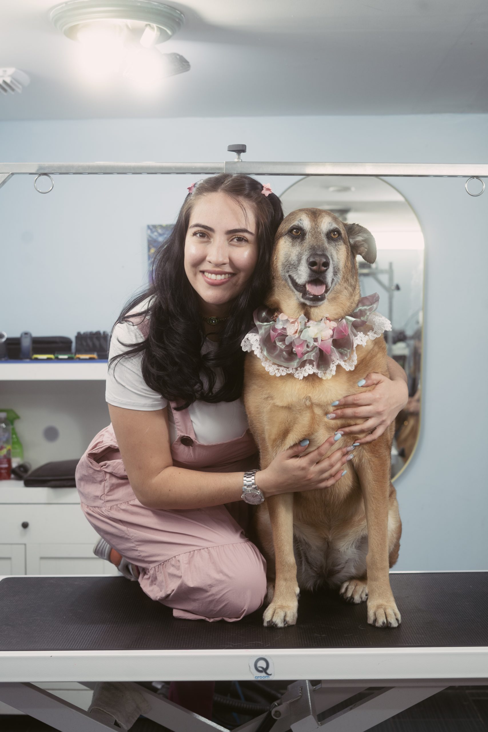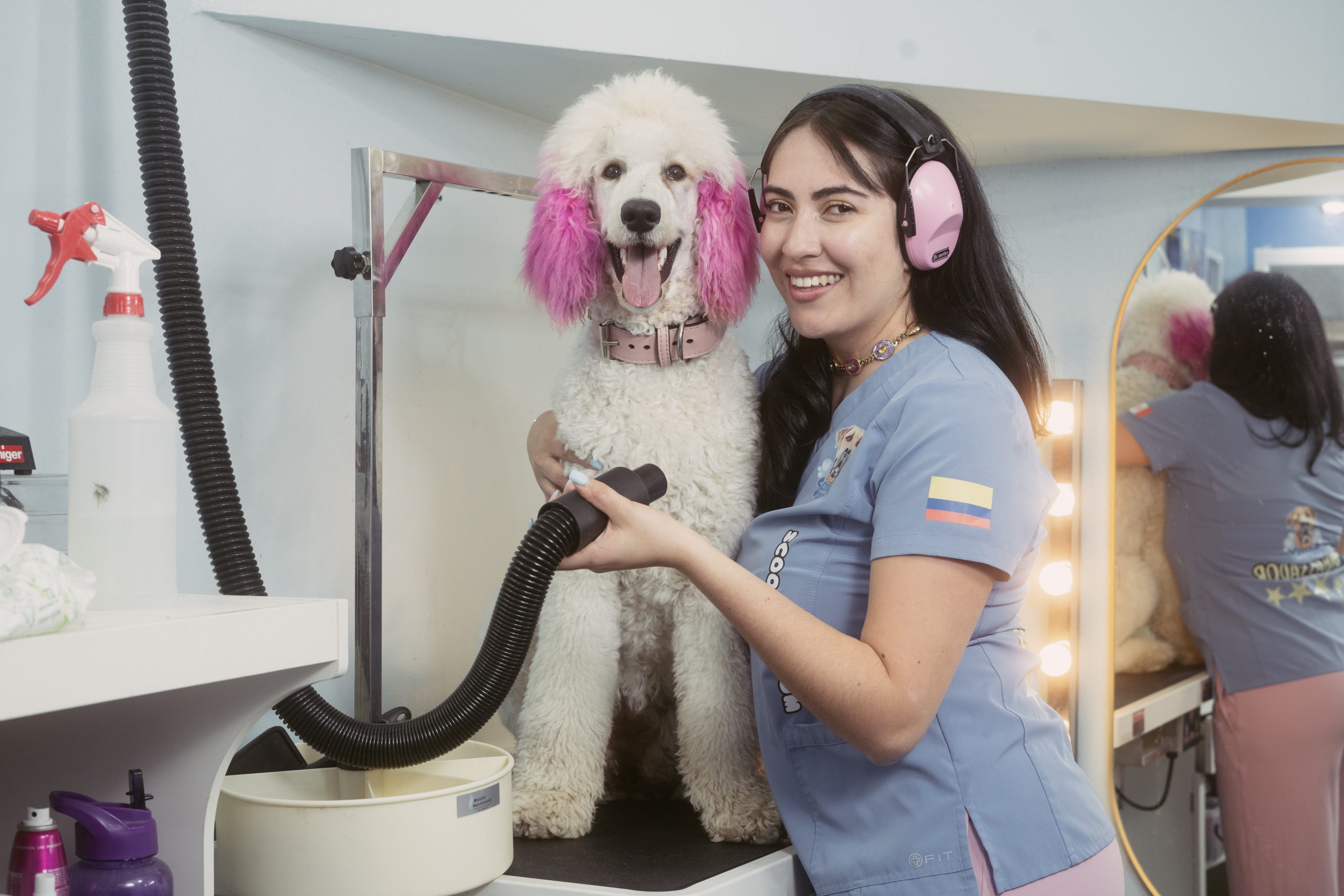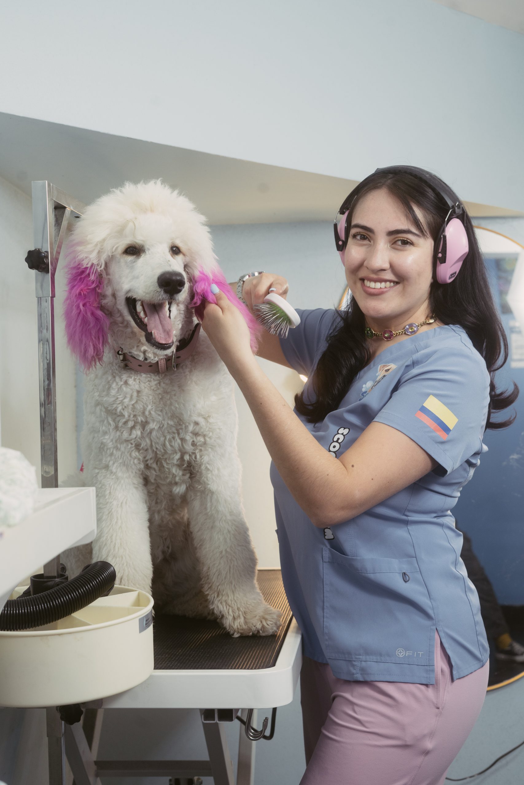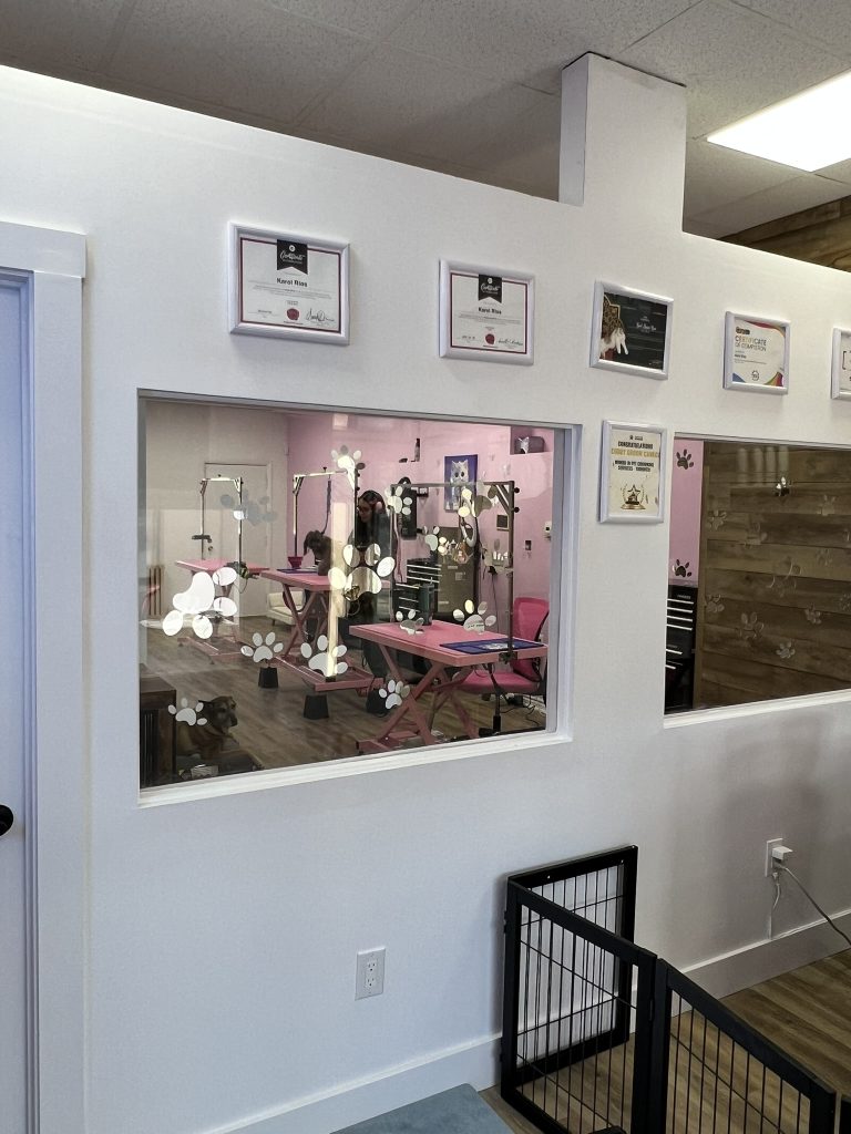 I studied veterinary medicine and grooming, and when I arrived in Canada, I did so with the hope of building a better life and continuing to work with what I love most: animals. I started from scratch, humbly, by setting up a small salon in my garage. Little by little, people began to trust me, to recommend me, and to feel that there was something more than just grooming in that space… there was love.