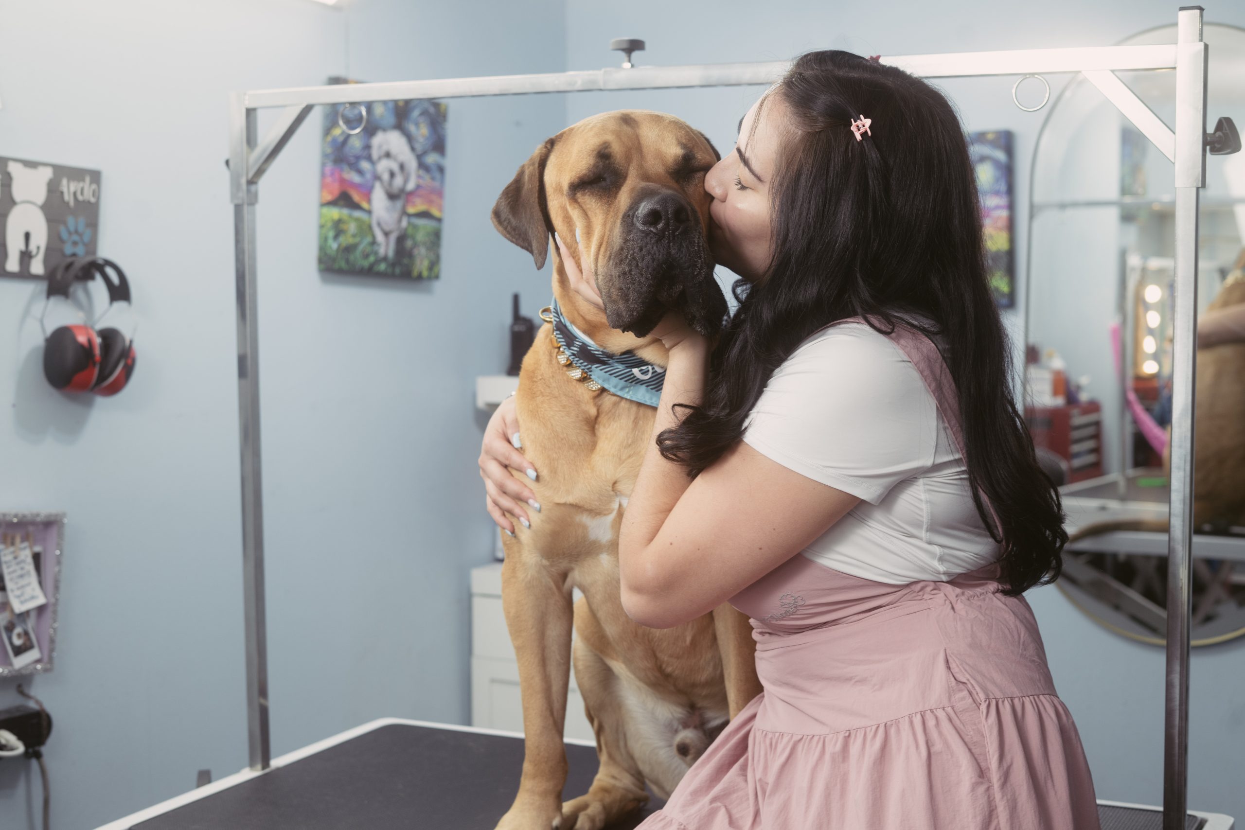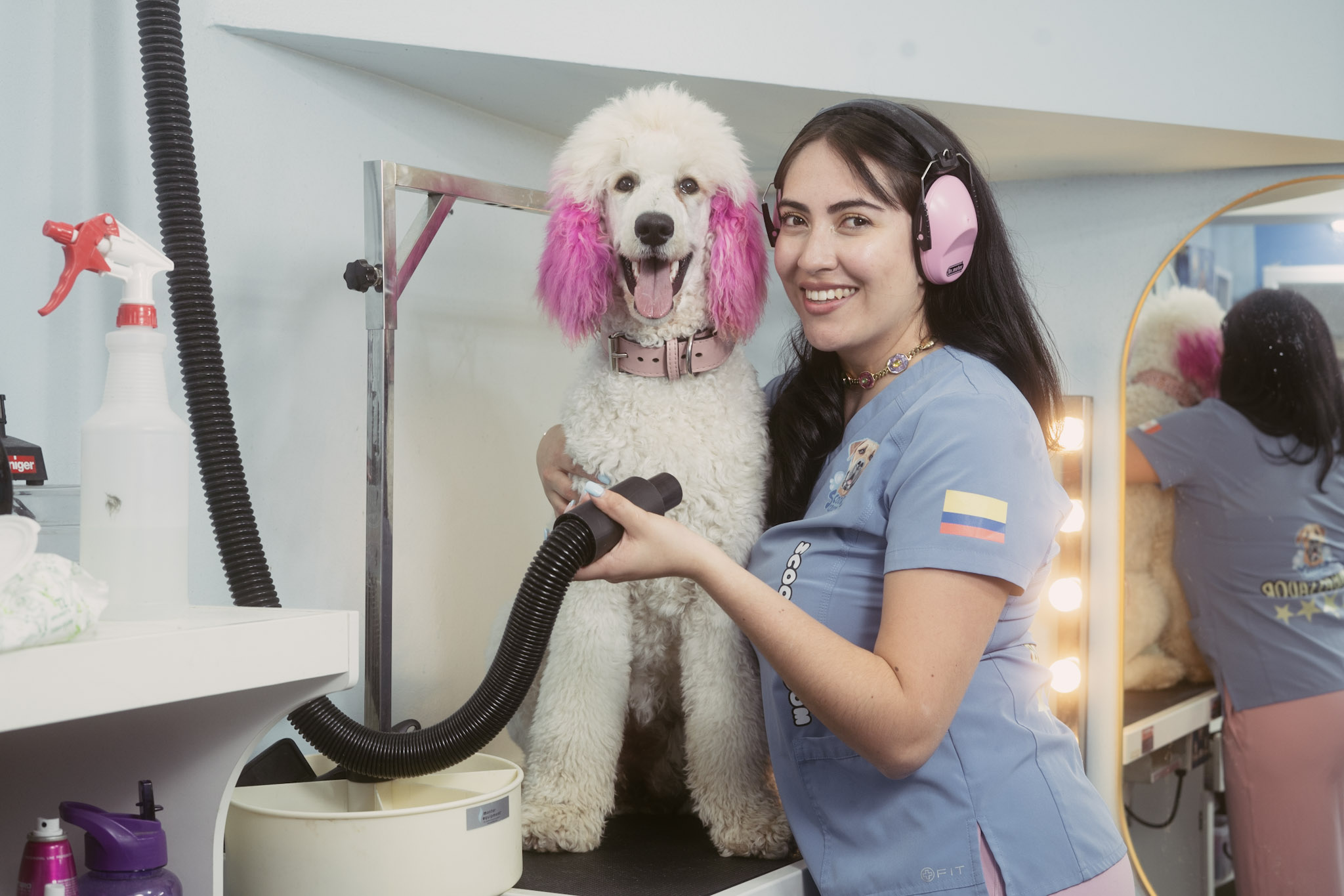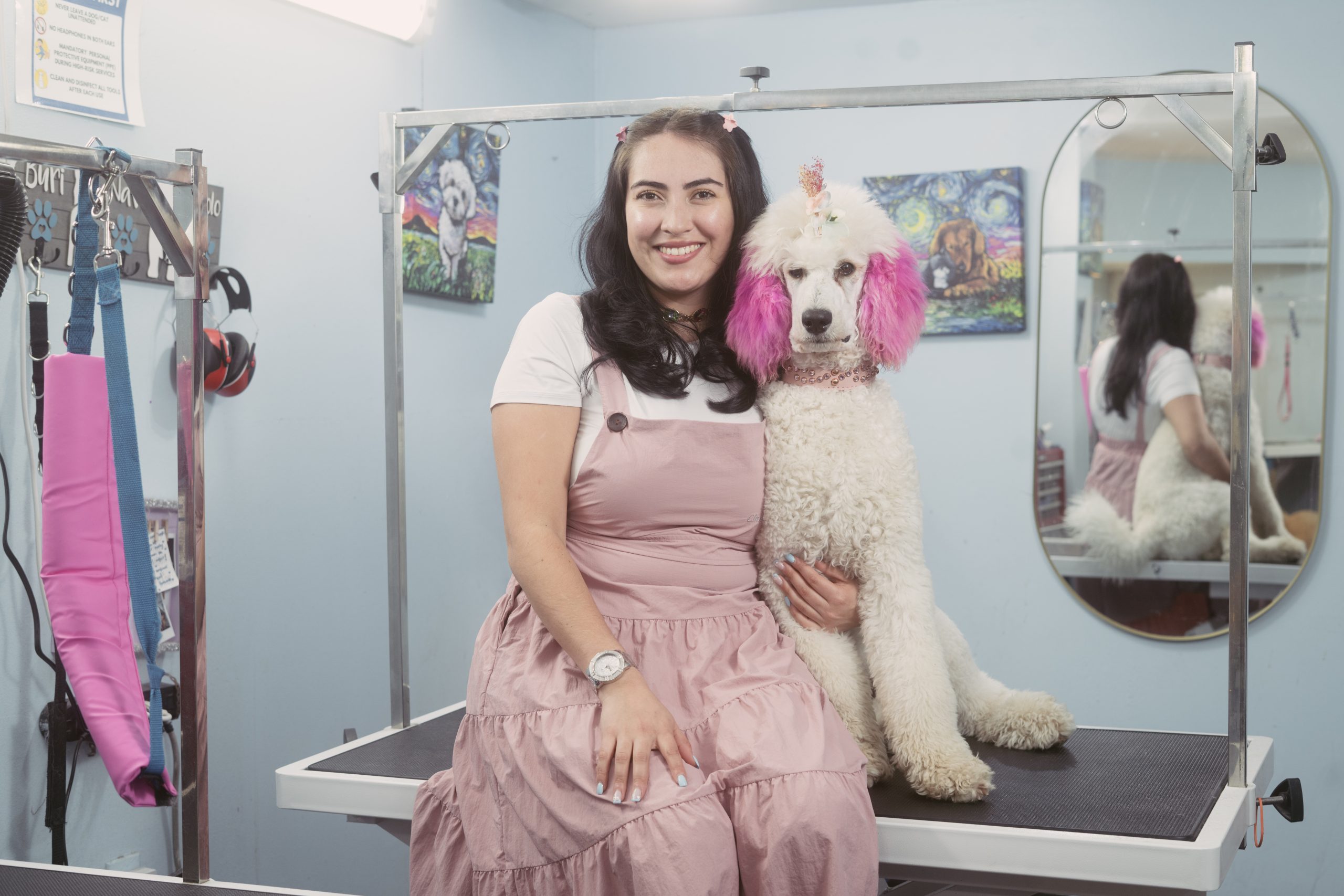 I studied veterinary medicine and grooming, and when I arrived in Canada, I did so with the hope of building a better life and continuing to work with what I love most: animals. I started from scratch, humbly, by setting up a small salon in my garage. Little by little, people began to trust me, to recommend me, and to feel that there was something more than just grooming in that space… there was love.
