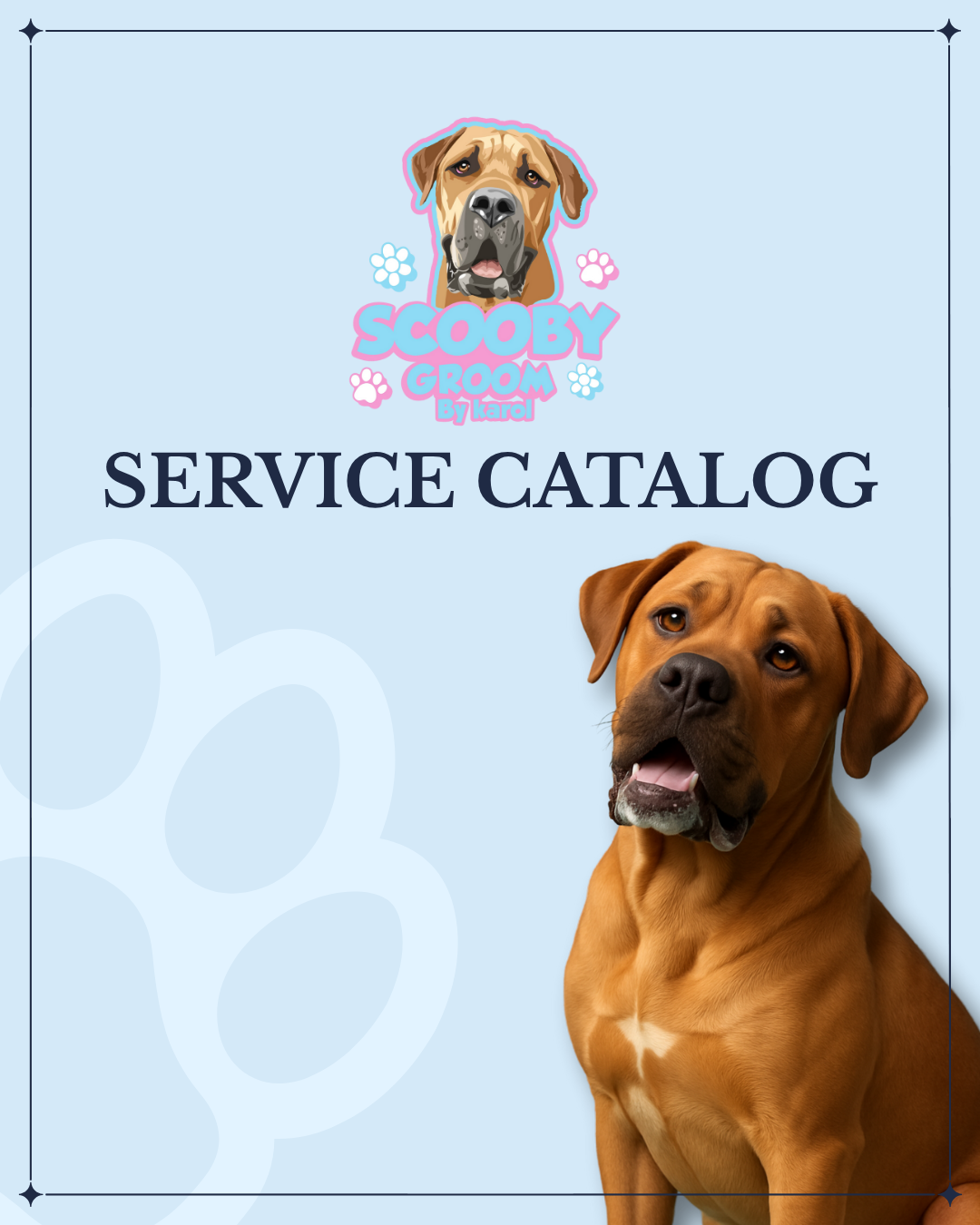 To book a grooming appointment click the button whatsapp email Karol@scoobygroom.com or contact@scoobygroom.com to book a Meet & Greet before your dog’s first day of grooming with us!