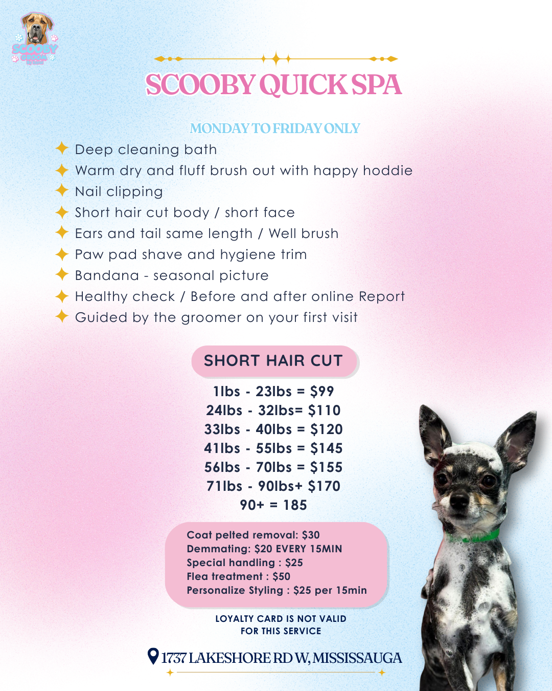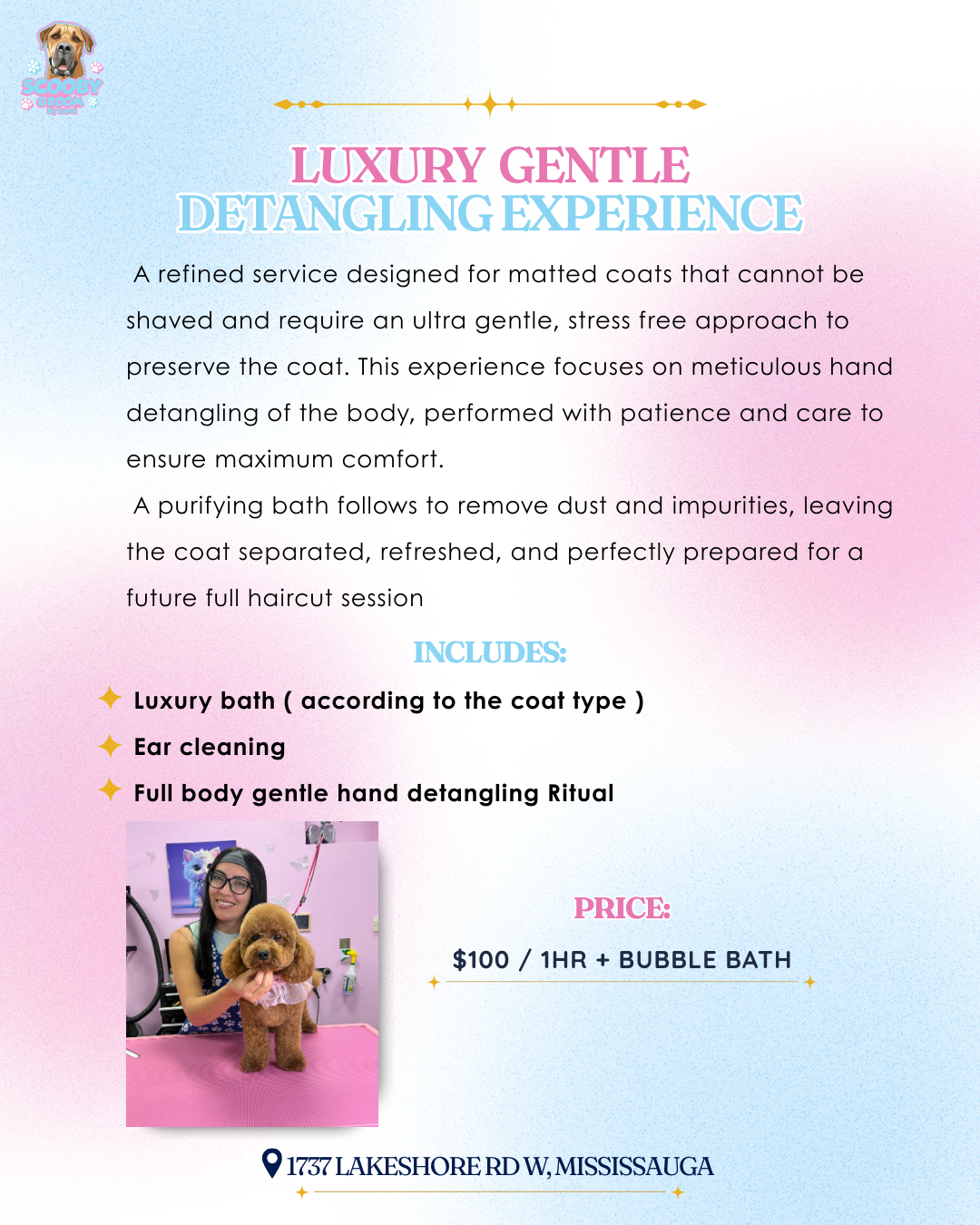 Karol is amazing at what she does. She is very caring and took excellent care of my fur baby as if he was her own. So happy that she came to Mississauga. Definitely will recommend Scooby Groom by Karol to all of my family and friends.